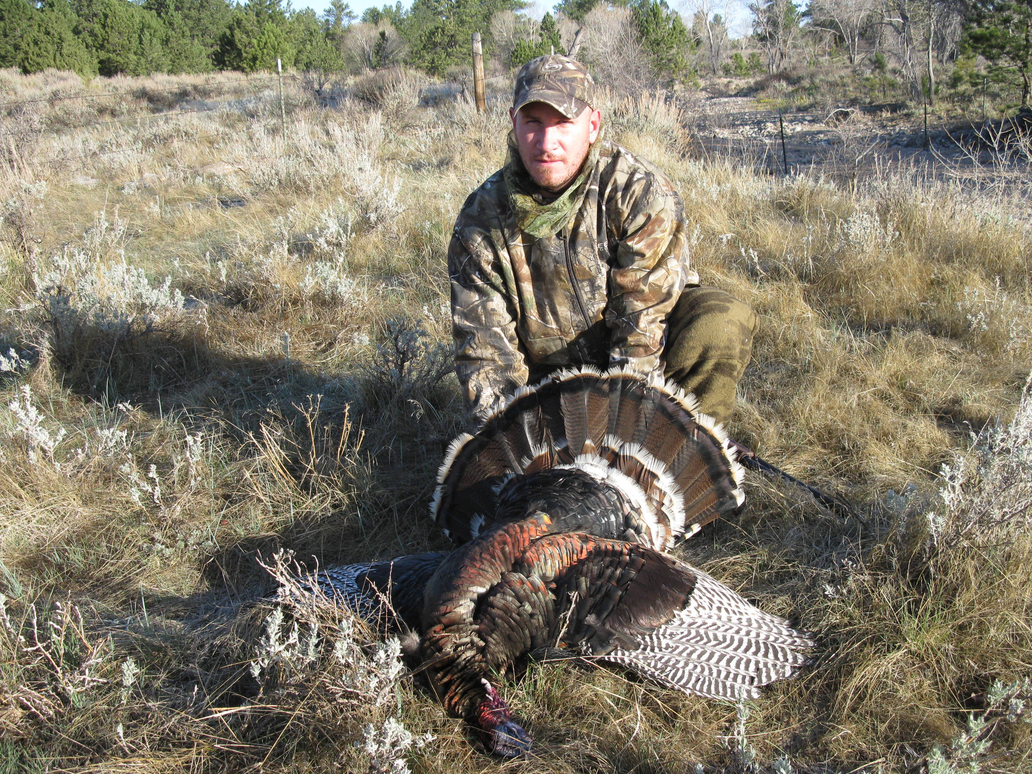 Our ranches offer great turkey hunting during the months of April and May. We hunt our turkeys in the river bottoms and adjacent fields. Some of the hunting takes place up in the rocks and ponderosa pine covered mountains which makes a super hunt.